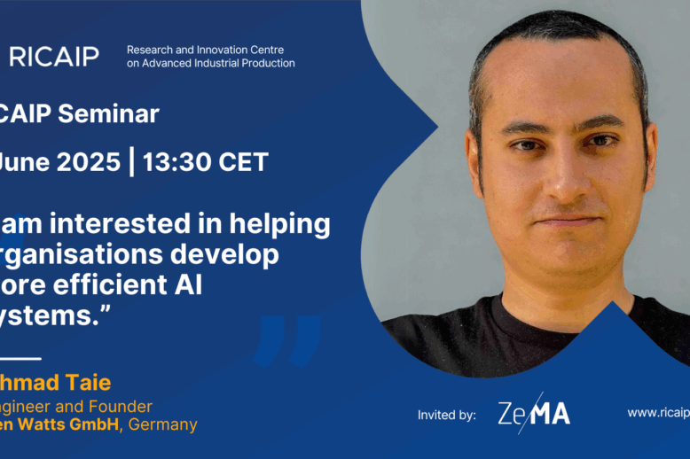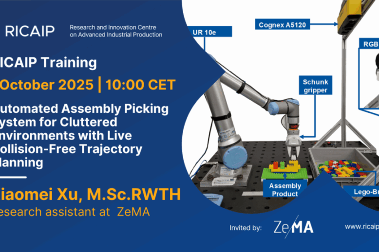 Termin: 01. Oktober 2025 Uhrzeit: 10:00 bis 12:00 Uhr Ort: Online via Zoom sowie Live-Stream auf YouTube Hinweis: Das Seminar wird in Englisch gehalten. Das Zentrum für Mechatronik und Automatisierungstechnik (ZeMA) und das Projekt RICAIP – Research and Innovation Centre on Advanced Industrial Production laden Sie herzlich zu einem…